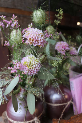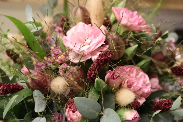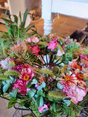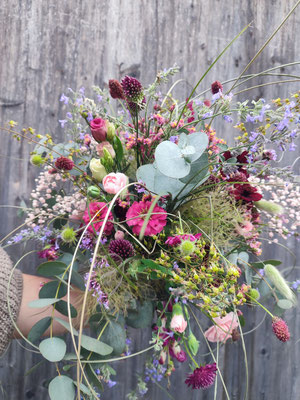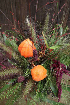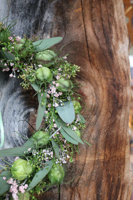 Diese Materialien verleihen dem Ganzen das gewisse Etwas und unterscheiden unsere Gebinde von den üblichen. Auch altes Holz und diverse antike Gefäße werden bei uns verarbeitet. So natürlich wie möglich ist unser Moto, wir lieben das was vor unserer Haustüre wächst.